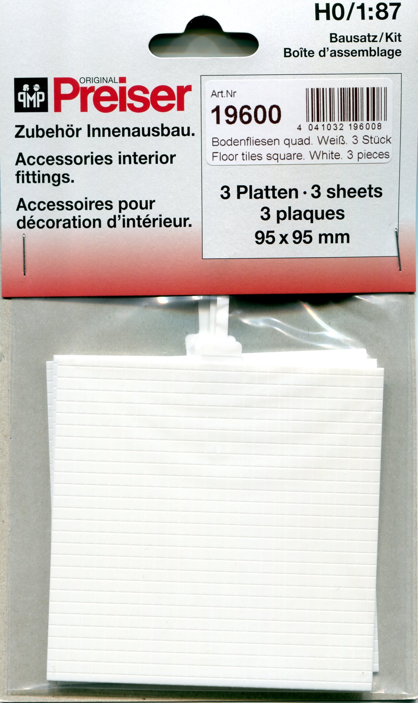 PF19600 プラスティックシート フロアタイル型(正方形3x3mm) (ホワイト) 約95×95mm/厚1.0mm 3枚入