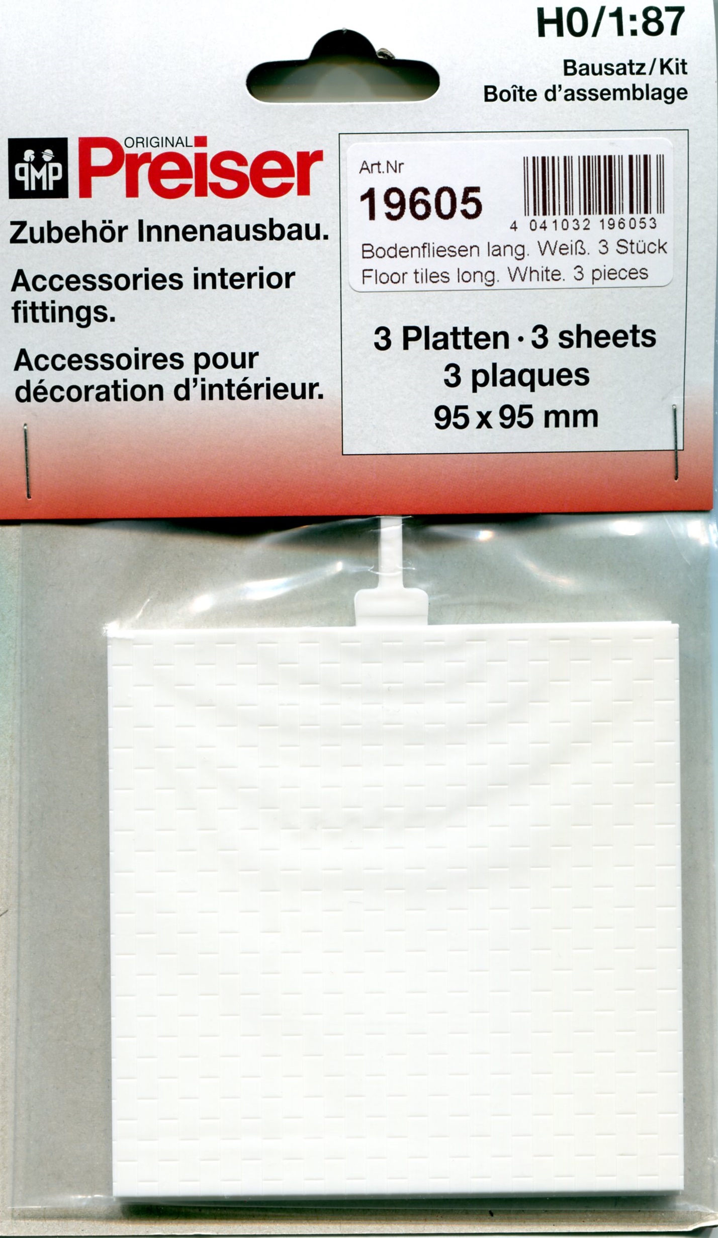 PF19605 プラスティックシート フロアタイル型(長方形3x7mm) (ホワイト) 約95×95mm/厚1.0mm 3枚入