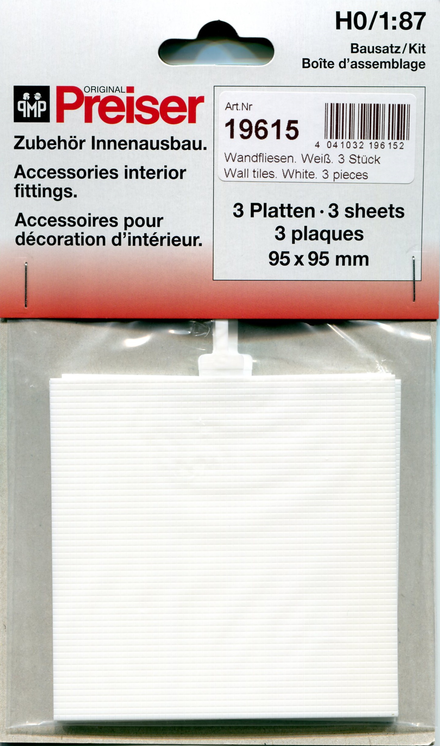 PF19615 プラスティックシート 壁タイル型(正方形2x2mm) (ホワイト) 約95×95mm/厚1.0mm 3枚入