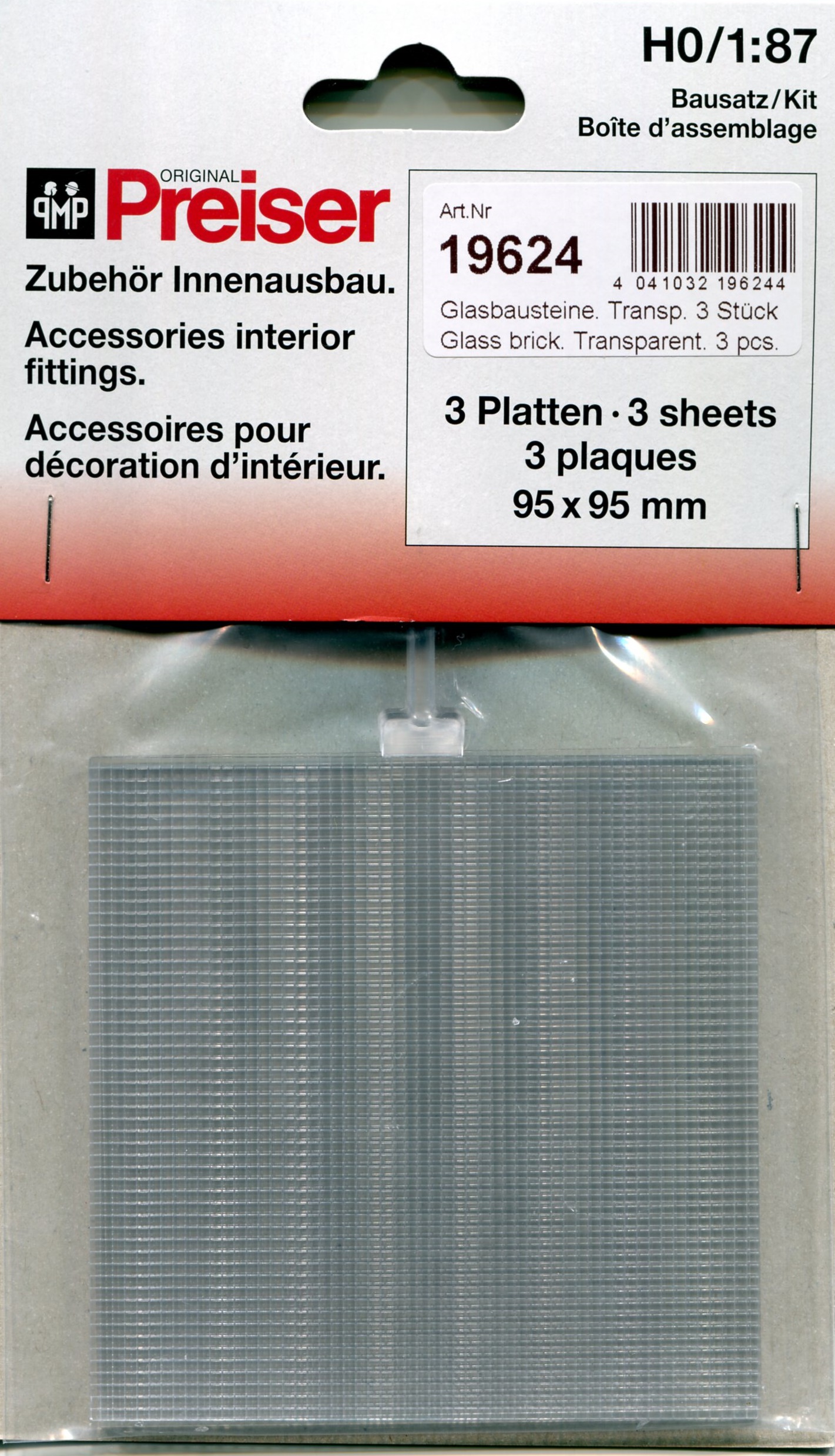 PF19624 プラスティックシート ガラスレンガ型(正方形2x2mm) (透明) 約95×95mm/厚1.0mm 3枚入