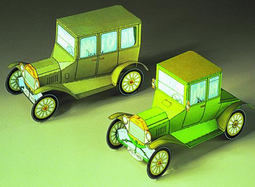 SB71456 2台のフォード クラシックカー Ford 1/30 初級者向きペーパークラフトモデル(組立式)