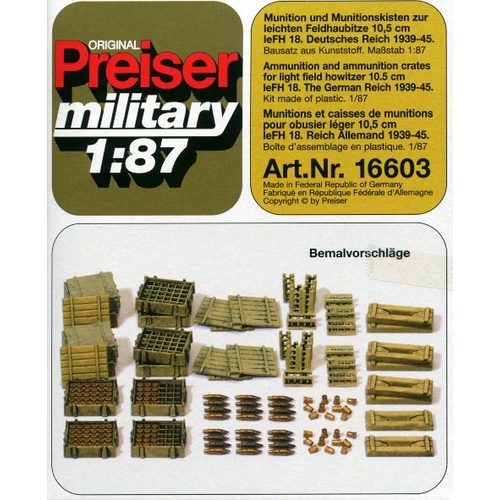 PF16603 未塗装 弾薬&弾薬箱(榴弾砲105mm leFH 18用) ドイツ軍 1939-45年 キット 1/87