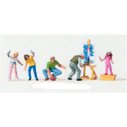 MF0212576 絵を描く人(ストリートペインター) 塗装済 1/87 人物H約1.3-1.7cm 5体+キャンパス