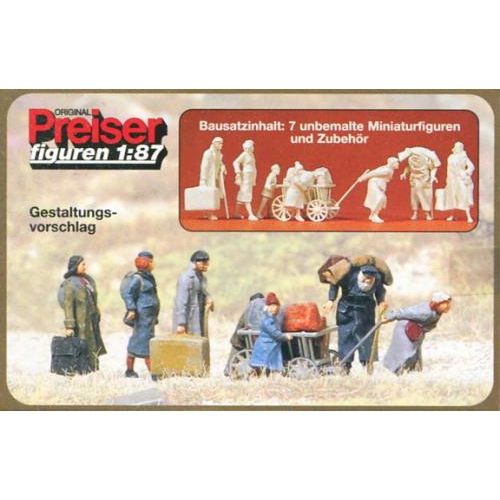 PF16558 避難民 未塗装キット 1/87 H約1.4-2.1cm 7体+荷車、アクセサリー