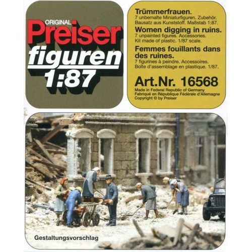 PF16568 廃墟を片付ける民間人 未塗装キット 1/87 H約1.5-2.1cm 7体+荷車、アクセサリー