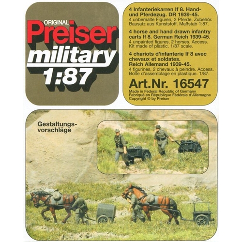 PF16547 ドイツ軍 馬と荷車で銃器などを運ぶ兵士 1939-45年 WW-II 未塗装キット 1/87 人物4体、馬2体、荷車4台