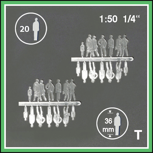 SZ02.50000.20 シルエット人物模型 透明 1/50 H約36.0mm 20体入(4ポーズ)