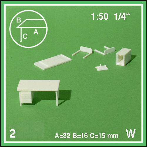SZ55.20211.2 未塗装 引出付事務机 (ホワイト) 1/50 W3.1cm/D1.6cm/H1.5cm 2台入