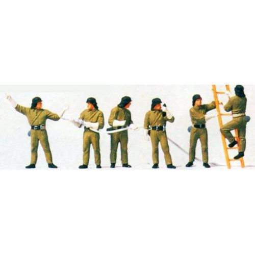 MFHO-2545 消防士 塗装済 1/87 H約2-2.4cm 6体+ハシゴ(L 5.9cm) 2台、ホース