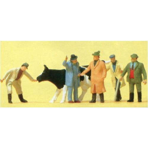 PF14039 ファーマー/牛 塗装済 1/87 人物 H約2cm 5体+牛1頭入