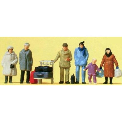 PF14038 通行人(冬服)/カートでスーツケースを運ぶ人 塗装済 1/87 H約1.3-2.1cm 6体入