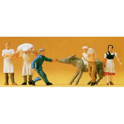 PF14129 製粉所作業員/ロバを引く人/バケツを持つ女性 塗装済 1/87 H約1.7-2cm 6体入