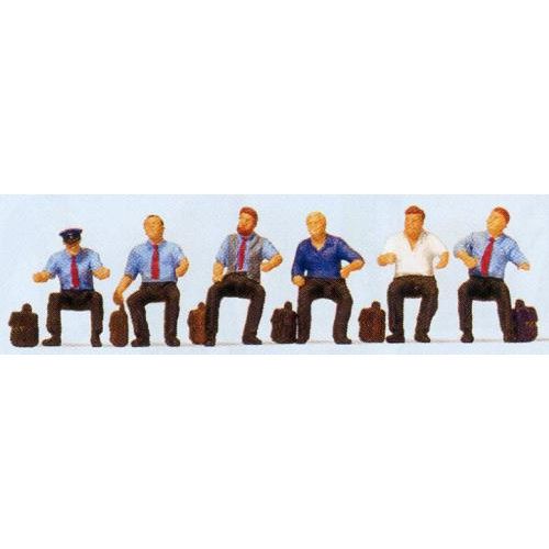 PF10598 座っている鉄道員と男性 塗装済 1/87 H約1.5cm 6体+カバン 数量限定特価