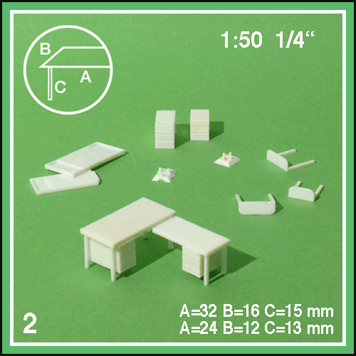 SZ55-20112-5 未塗装 引出付事務机 (ホワイト) 1/50 3.1cm×4.2cm/H1.5cm 2台入