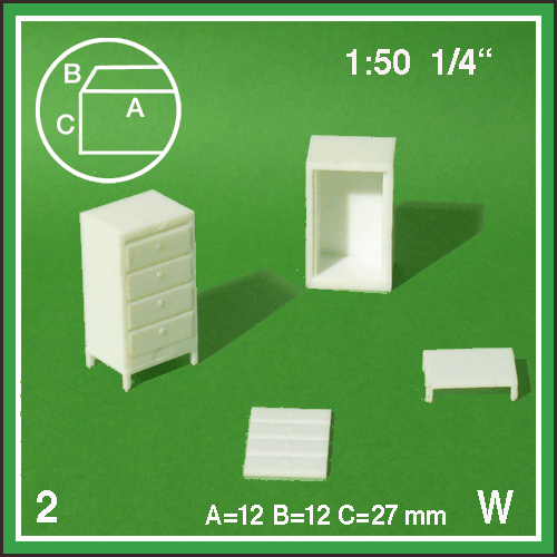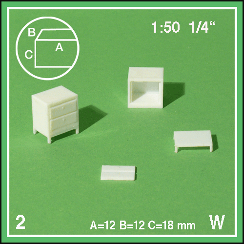 SZ55-3220 未塗装 2段キャビネット (ホワイト) 1/50 W1.2cm/D1.2cm/H1.8cm 2台入
