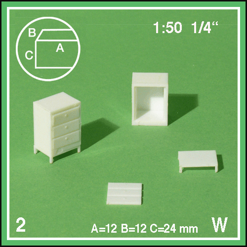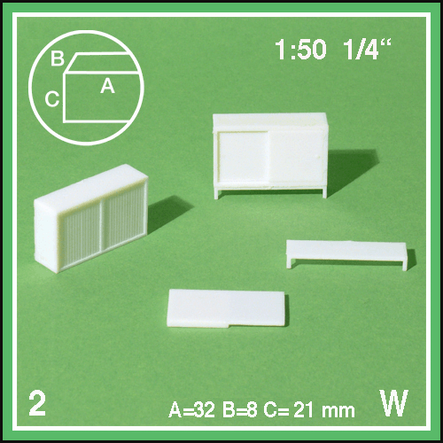 SZ55-3320 未塗装 引戸 キャビネット (ホワイト) 1/50 W1.6cm/D0.8cm/H1.5cm 2台入