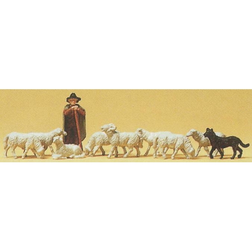 PF75020 ヒツジ/番犬/羊飼い セット 塗装済 1/120 ヒツジ L約1cm ヒツジ8体、番犬/羊飼い各1体入