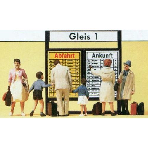 PF10417 駅で時刻表を見る人 塗装済 1/87 H約1.2-1.9cm 6体+時刻表看板、アクセサリー 数量限定特価